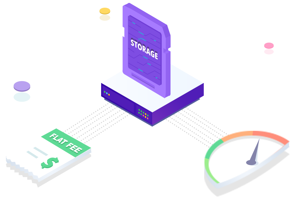 Available at a flat fee. No complicated billing based on Bandwidth or IOPS usage
